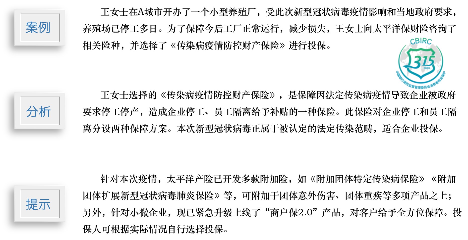 3·15|以案說險:(企業(yè)客戶)疫情期間如何挑選適合自己的產(chǎn)品