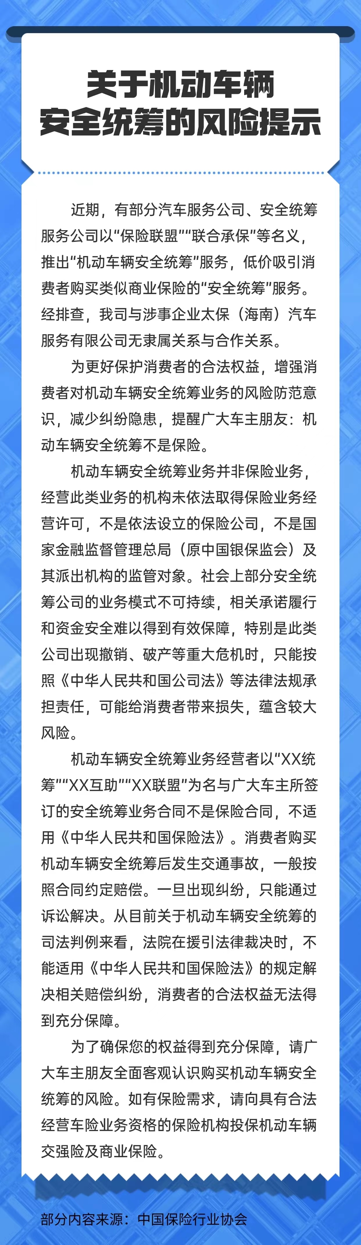 【風(fēng)險(xiǎn)提示】關(guān)于機(jī)動(dòng)車輛安全統(tǒng)籌的風(fēng)險(xiǎn)提示