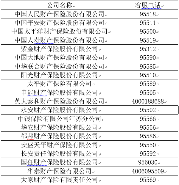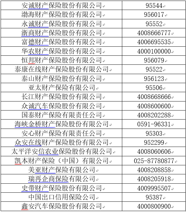 各財產保險公司客戶服務電話