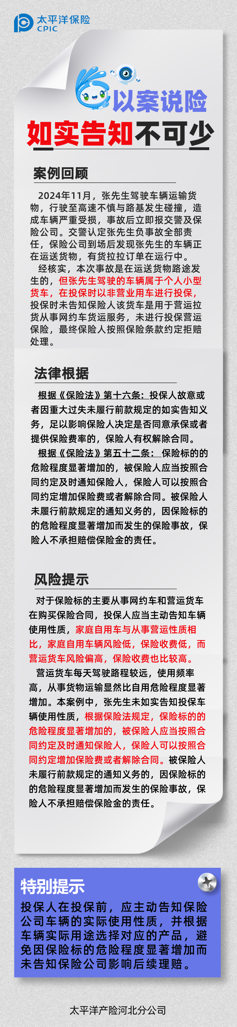 以案說險(xiǎn) | 車用性質(zhì)勿隱瞞,如實(shí)告知不可少