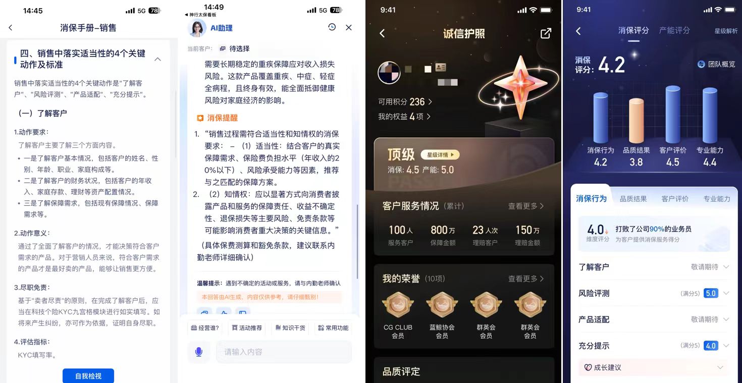 小曹的故事不止于此,對(duì)于成千上萬(wàn)個(gè)小曹,公司提供了公開(kāi)透明、客觀一致的誠(chéng)信積分激勵(lì),規(guī)范展業(yè)行為可累計(jì)誠(chéng)信積分,從“專業(yè)能力、消保行為、品質(zhì)結(jié)果、客戶評(píng)價(jià)”四大維度對(duì)營(yíng)銷(xiāo)員進(jìn)行動(dòng)態(tài)評(píng)估,推動(dòng)營(yíng)銷(xiāo)員主動(dòng)踐行消保要求。業(yè)務(wù)員和客戶們相互成就,誠(chéng)信逐步轉(zhuǎn)化為穩(wěn)定、可持續(xù)的服務(wù)價(jià)值。